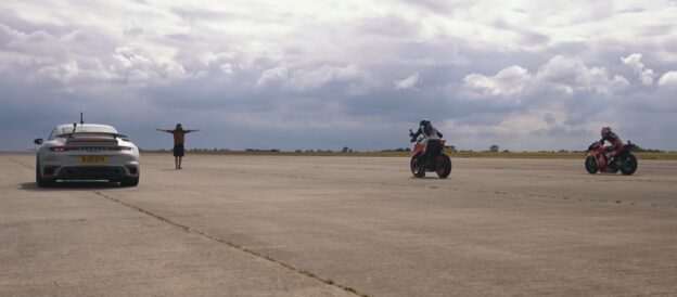 The 992 Turbo S has beaten almost every car it can find in a drag race. But can it compete with a KTM MotoGP and road bike?