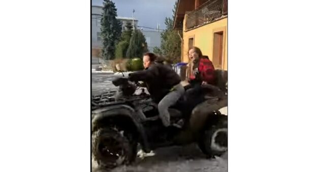 Close calls in the slush. These girls here understand the appeal of blowing doughnuts on the quad when school gets cancelled. They come dangerously close to having to explain to dad why the garage door frame is twisted, though!